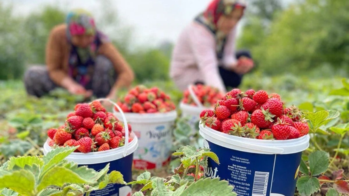 İlk meyvelerini veren çilekleri küçük, orta ve büyük ölçekli tarlalarda üreten yetiştiriciler, sabahın erken saatlerinde toplamaya başlıyor.