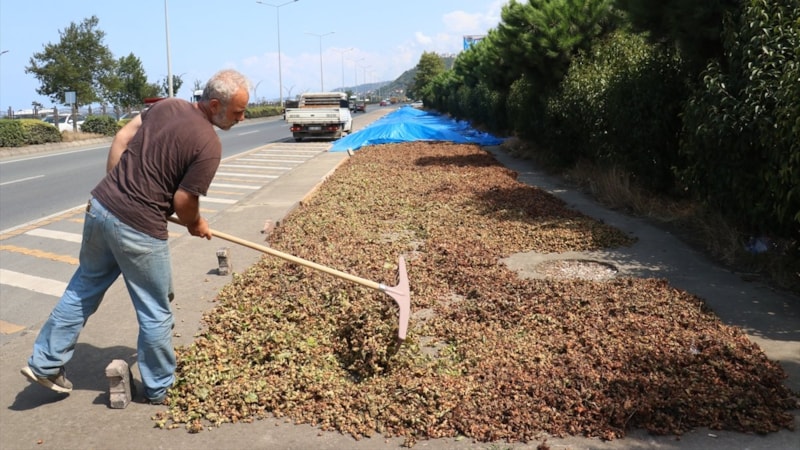 Karadeniz’in en önemli gıda ürünlerinden fındık, yeni sezondaki hasadın ardından üreticiler tarafından Karadeniz Sahil Yolu’ndaki kaldırımlarda kurutulmaya başlandı.