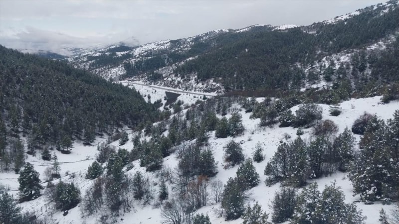 Bu arada güzel görüntülerin oluştuğu Acısu ve İznos bölgesindeki menderesler drone'la görüntülendi.Kar yağışının en çok etkili olduğu 2 bin 368 rakımlı Handere Geçidi'nde kar kalınlığı 15 santimetreye ulaştı.