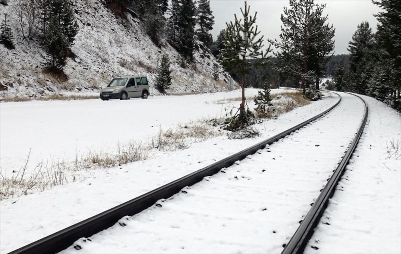 Karlı ormanlar içinden Ankara istikametinde giden Doğu Ekspresi treni güzel manzaralar sundu.