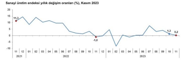 Türkiye İstatistik Kurumu (TÜİK), kasım sanayi üretimini açıkladı.