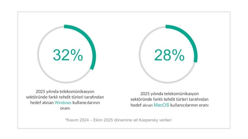 Kaspersky Güvenlik Ağı verilerine göre, Kasım 2024-Ekim 2025 döneminde telekom kullanıcılarının yüzde 12,79’u web tabanlı tehditlerle, yüzde 20,76’sı ise cihaz içi tehditlerle karşılaştı. Dünya genelindeki telekom kuruluşlarının yüzde 9,86’sı fidye yazılımı saldırılarına maruz kaldı.