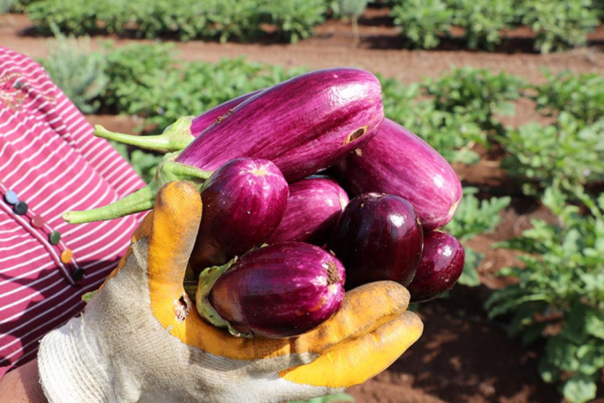 Kilis'e özgü olan ve özellikleri nedeniyle talep gören Zabaran patlıcanının bu yılki hasadı Yavuzlu Köyü'nde başladı.