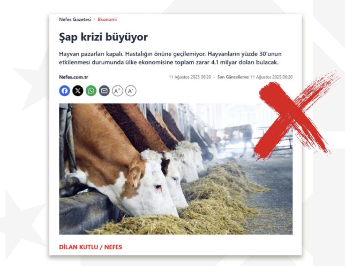 Dezenformasyonla Mücadele Merkezi (DMM), bazı basın yayın organlarında yer alan, “Hayvanlarda görülen şap hastalığının ülkemizde bazı bölgelerde hızla yayıldığı ve milyarlarca dolarlık ekonomik kayba yol açtığı” iddialarının, dezenformasyon amaçlı olup bilimsel temelden yoksun olduğunu açıkladı.