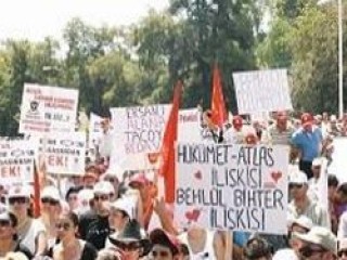 Kıbrıs Türk Hava Yolları'nın (KTHY)Atlasjet ortaklığına gitmesiyle başlayan süreçten Türkiye'yi sorumlu tutan sendikacılar, düzenledikleri mitingde "Ankara ne paranı ne ekonomik paketini istiyoruz" yazılı pankartlar taşıdı.