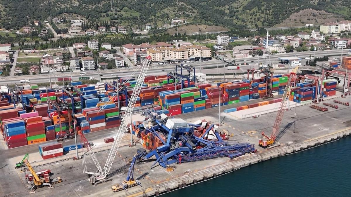 Evyapport liman işletmesinde konteyner yüklü geminin kıyıdaki 3 kule vince çarparak devirdiği kazanın ardından 1 aydır enkaz kaldırma çalışmaları sürüyor.