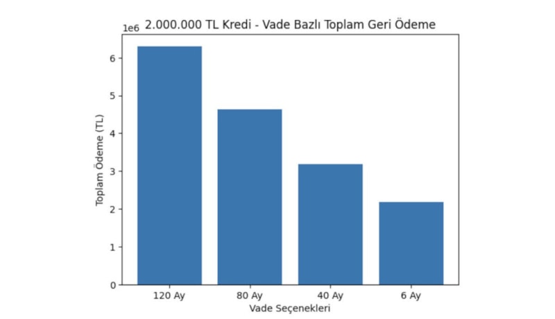 2 MİLYON TL İÇİN 4 FARKLI VADEDE GERİ ÖDEME SENARYOLARI