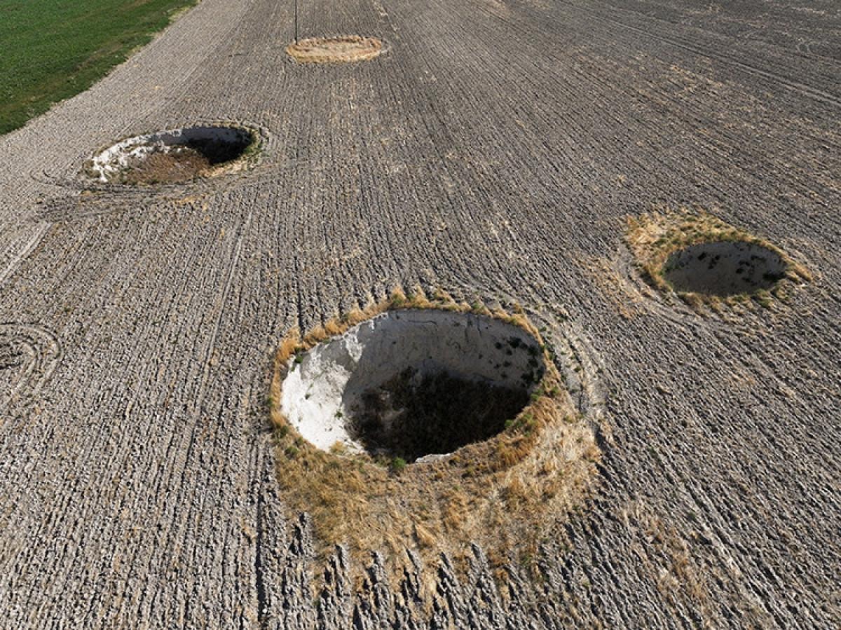 Konya'nın Karapınar ilçesinde çap ve derinlikleri farklı 100'den fazla çöküntünün olduğu, tarım arazilerinin bulunduğu alanın bazı yerlerinde iki obruk arası 5 metreye kadar düşüyor.