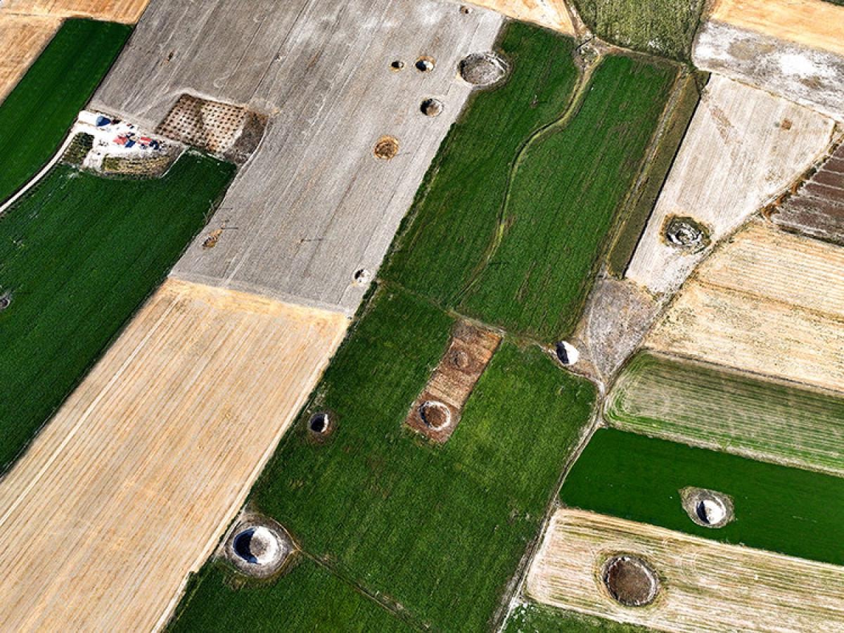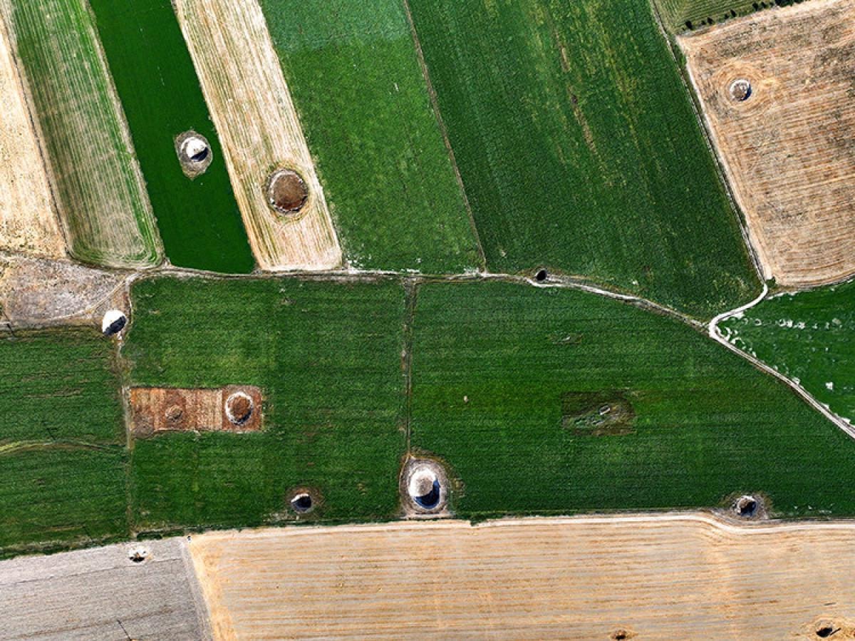 İki obruk arasının 5 metreye kadar düştüğü, çap ve derinlikleri farklı 100'den fazla çöküntünün olduğu yerde havadan çekilen fotoğraf karesine 24 obruk giriyor.