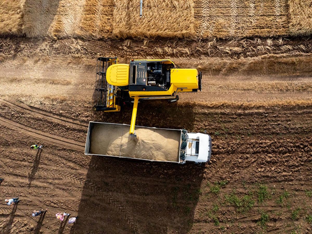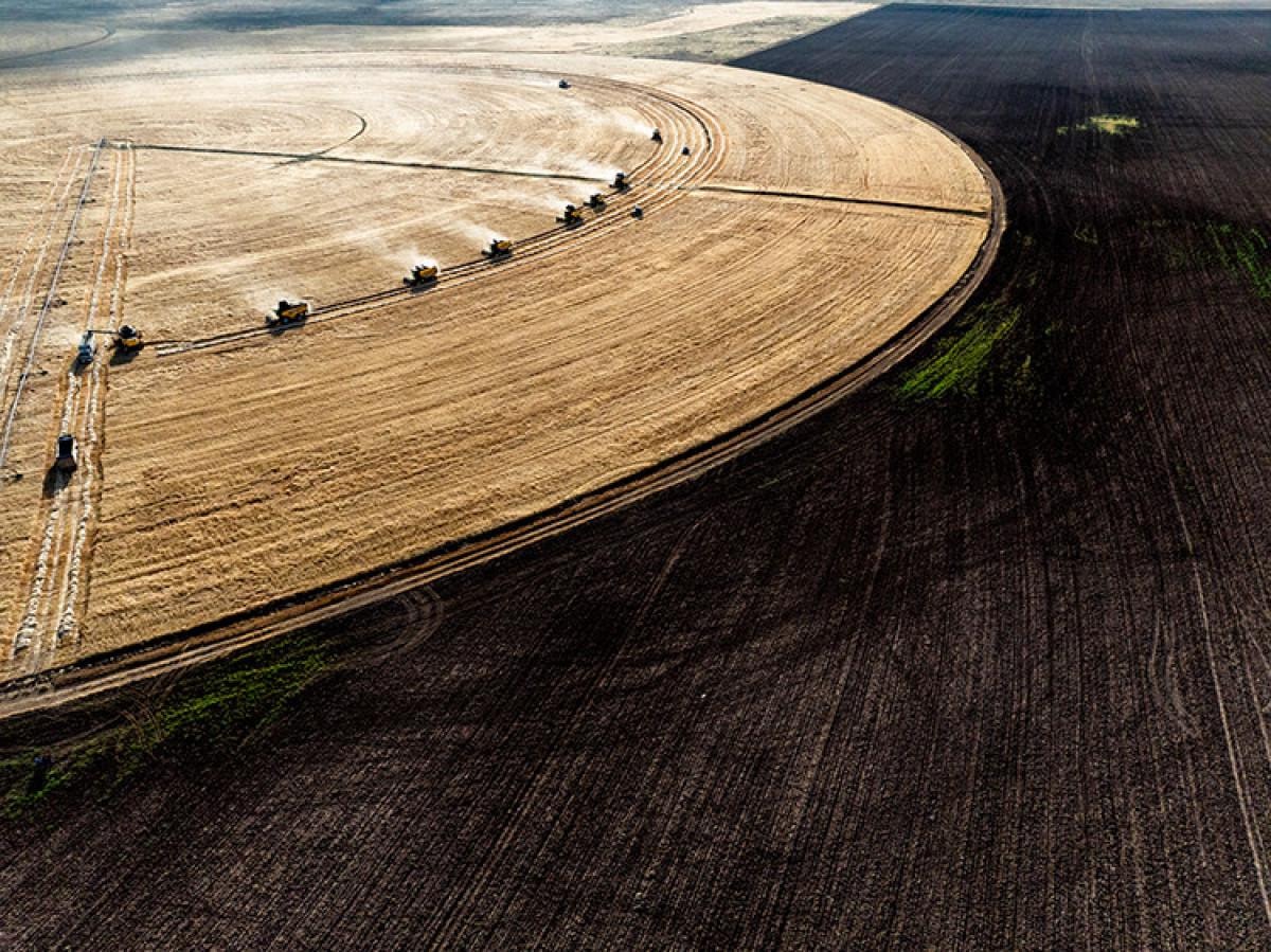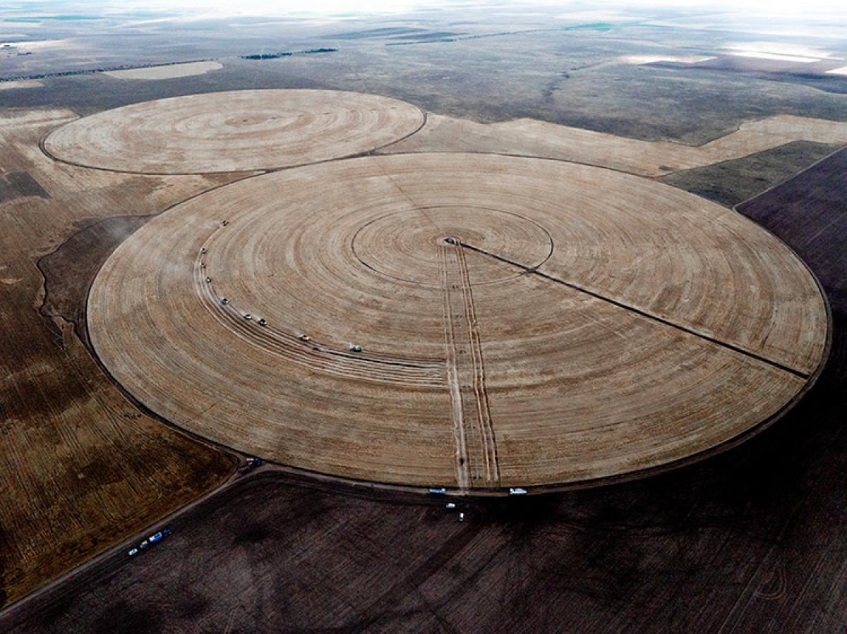 Tarlanın merkezini esas alan, yarı çap uzunluğundaki hareketli robotik sulama sistemine (center pivot) göre ekimin yapıldığı 492 dekarlık dairesel tarlalarda ise hasat, çok sayıda biçerdöverle gerçekleştirildi.