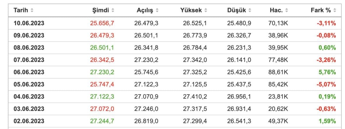Bugün 25 bin 655 dolardan işlem gören Bitcoin, dün en fazla 26 bin 773 dolardan işlem görüyordu.