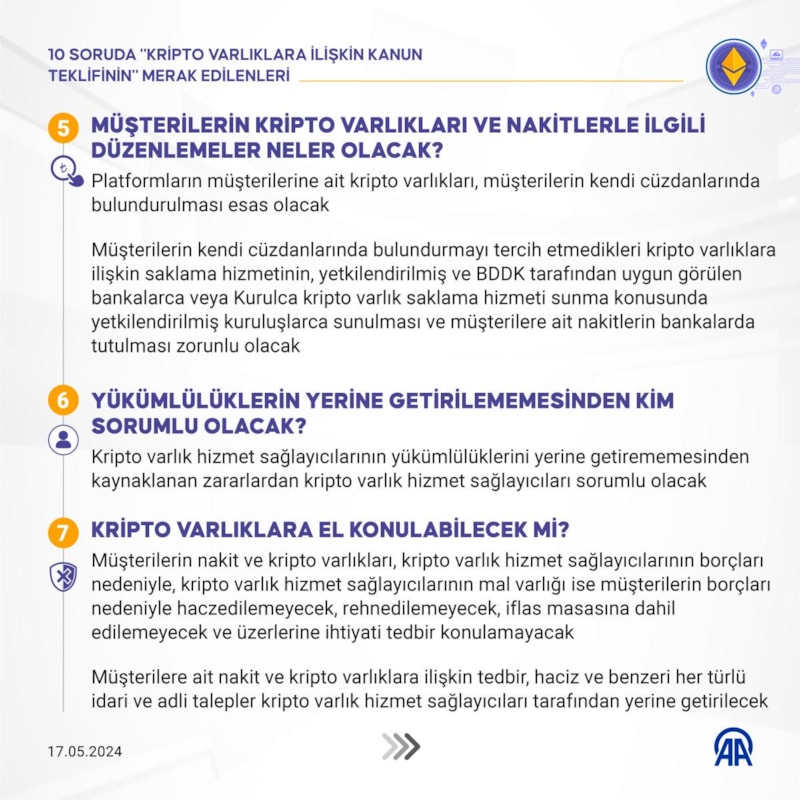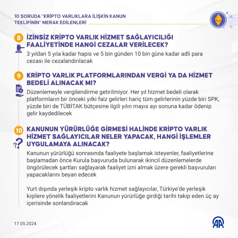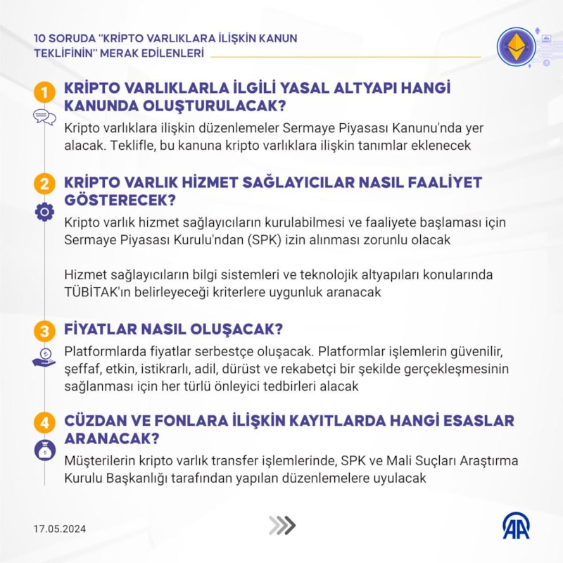 Kripto varlıklara ilişkin kanun teklifiyle ilgili 10 soru ve yanıtları şöyle:
