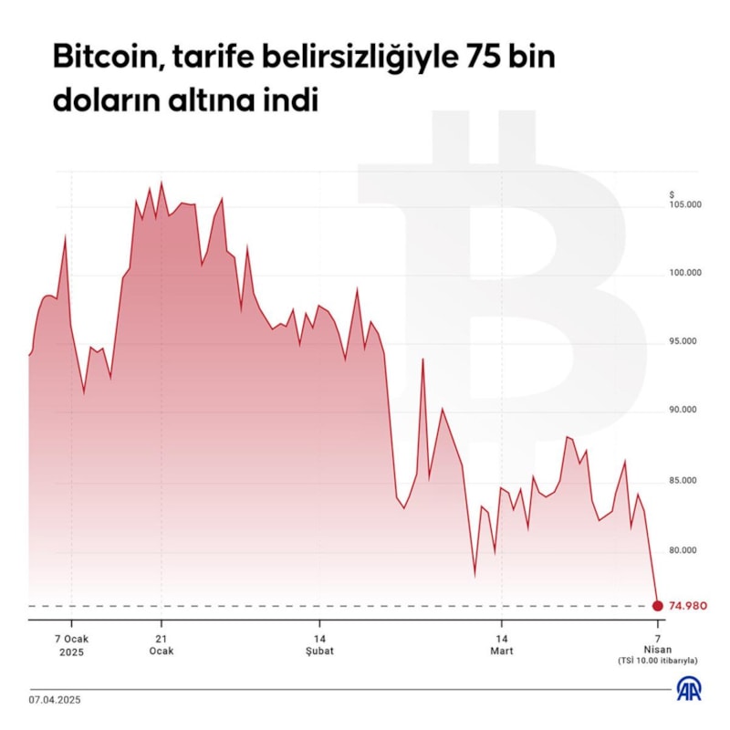 ABD Başkanı Donald Trump'ın gümrük vergileri belirsiz bir ortam oluşturduğu için Başta Bitcoin ve Ethereum olmak üzere kripto paralarda da kayıplar yaşandı. Kripto paraların toplam piyasa değeri 24 saatte yüzde 8,56 azaldı.