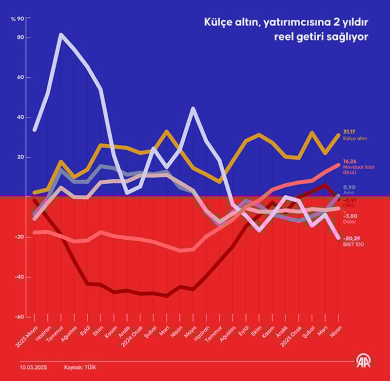 Külçe altın bu ayların tamamında yıllık bazda reel getiri sağlayan tek yatırım aracı oldu.
