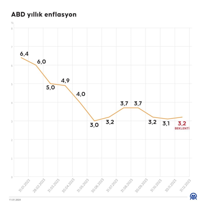 Enflasyon verileri öncesinde para piyasalarında, Fed'in ocak toplantısında faizi sabit bırakacağına kesin gözüyle bakılırken, mart toplantısında ise yüzde 67 ihtimalle ilk faiz indirimini gerçekleştirebileceği fiyatlanıyor.