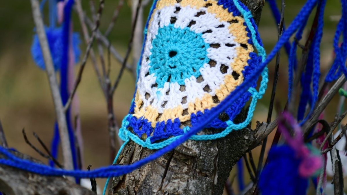 Kooperatif üyelerinin hayallerinden çıkarak örgüye dökülen gül, lavanta, nazar boncuğu, çiçek, mantar gibi onlarca desen kuru ağaçlara ayrı bir güzellik kattı.