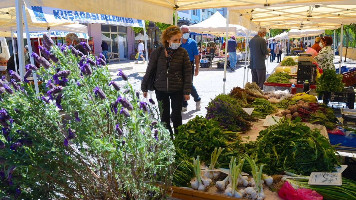 Kuşadası’nda her perşembe günü Cumhuriyet Mahallesi Burç Sokak’ta kurulan yerel üretici pazarı, uygun fiyata doğal ve sağlıklı beslenmek isteyenlerin vazgeçilmez uğrak noktası olmayı sürdürüyor.
