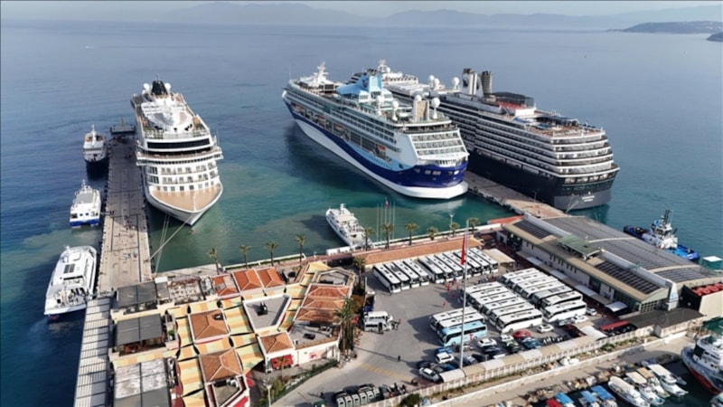 Hollanda, Norveç ve Bahama kaynaklı kruvaziyerler aynı anda Aydın'ın Kuşadası ilçesine demirledi.
