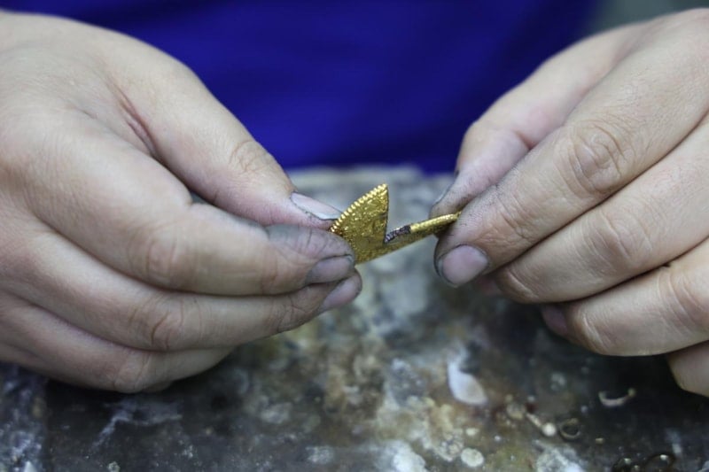 Daha sonra cama atarız. Gerçek altın tok ses verirken, sahte altın daha farklı bir ses verir. Sahtelerin sesi gerçek altının verdiği sesi vermez. Bilezikler de aynı şekilde ama bileziklerde de gram farkıyla çözüm olabilir. Görünüşleri aynı olan altını tarttığımız zaman özgül ağırlığı çok hafif gelecektir.