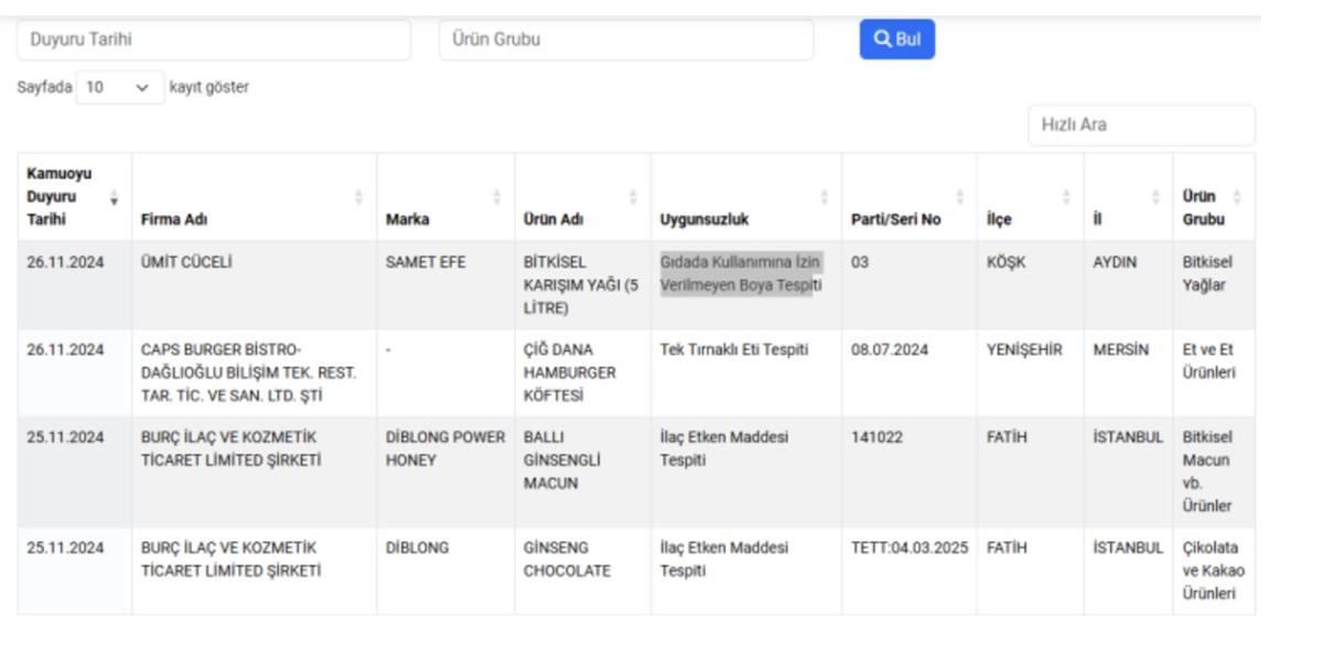 Tarım ve Orman Bakanlığı'nın paylaştığı Sağlığı Tehlikeye Düşürecek Gıdalar listesi her gün yapılan denetimler sorucunda yapılan tespitlerle yenilenmeye devam ediyor.