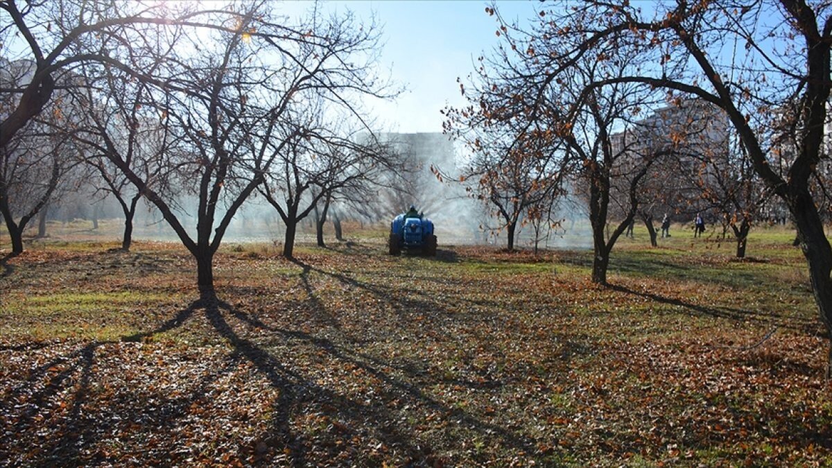 Kayısı bahçelerinde yeni sezon hazırlıklarına başlayan çiftçiler, budama ve gübreleme çalışmalarının ardından kayısı ağaçlarını çeşitli hastalıklara karşı ilaçlamaya başladı.