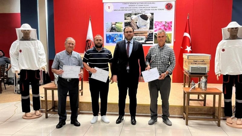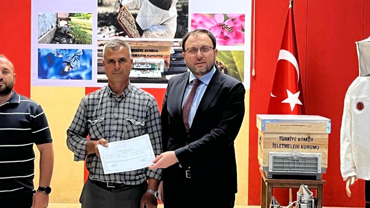 Ege Linyitleri İşletmesi’ne (ELİ) ait Çok Amaçlı Salon’da düzenlenen törende, temel arıcılık eğitimini başarıyla tamamlayan 52 vatandaşa sertifikaları ile birlikte arılı kovan ve ekipmanları teslim edildi.