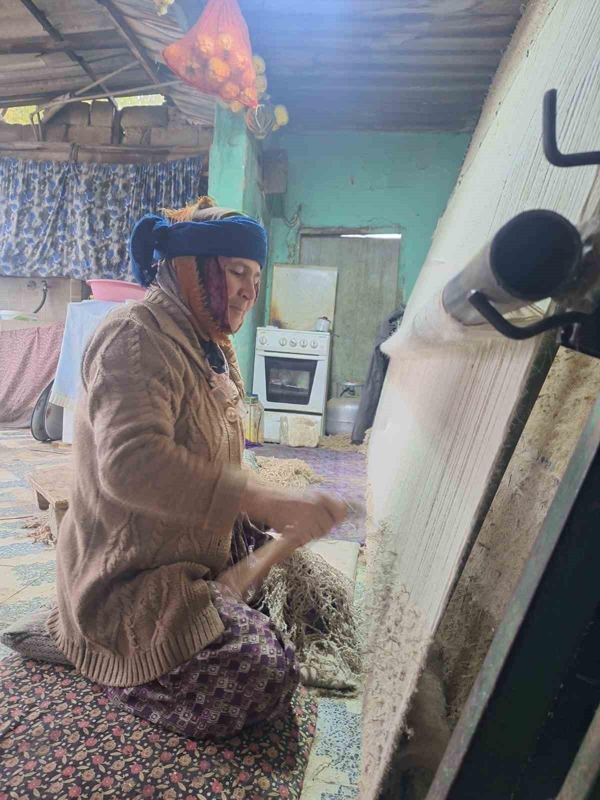 Yeniköy Mahallesi'nde Hediye İlhan, annesinden öğrendiği kilim dokumacılığını 30 yıldır devam ettiriyor.