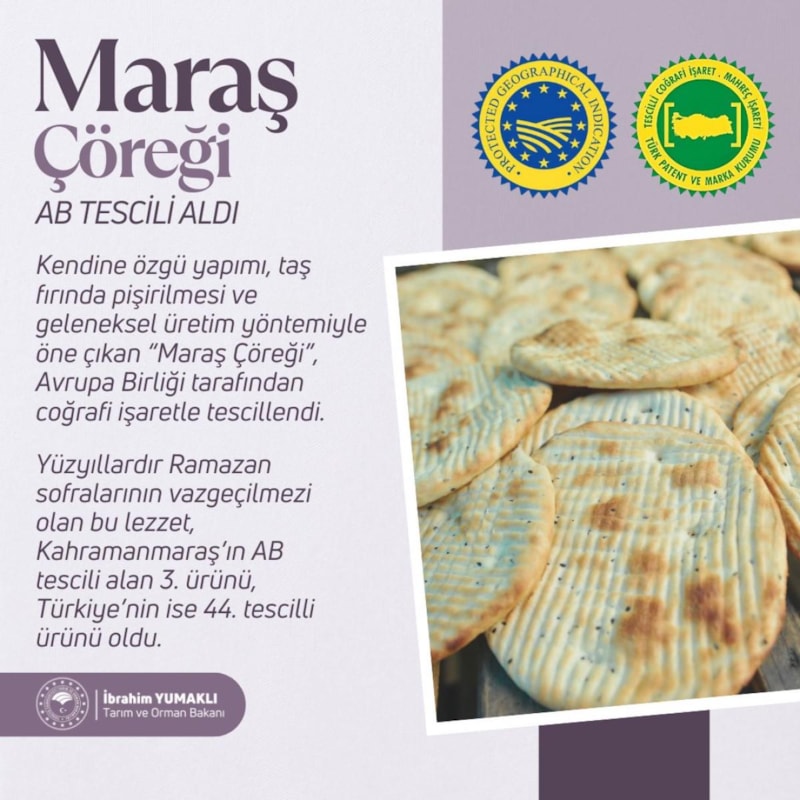 Ramazan sofralarının da vazgeçilmez lezzeti Maraş çöreği, AB'den coğrafi işaret tescili alarak korumaya alındı. Artık bu geleneksel ürün, Avrupa'da kendisine pazar bulabilecek.