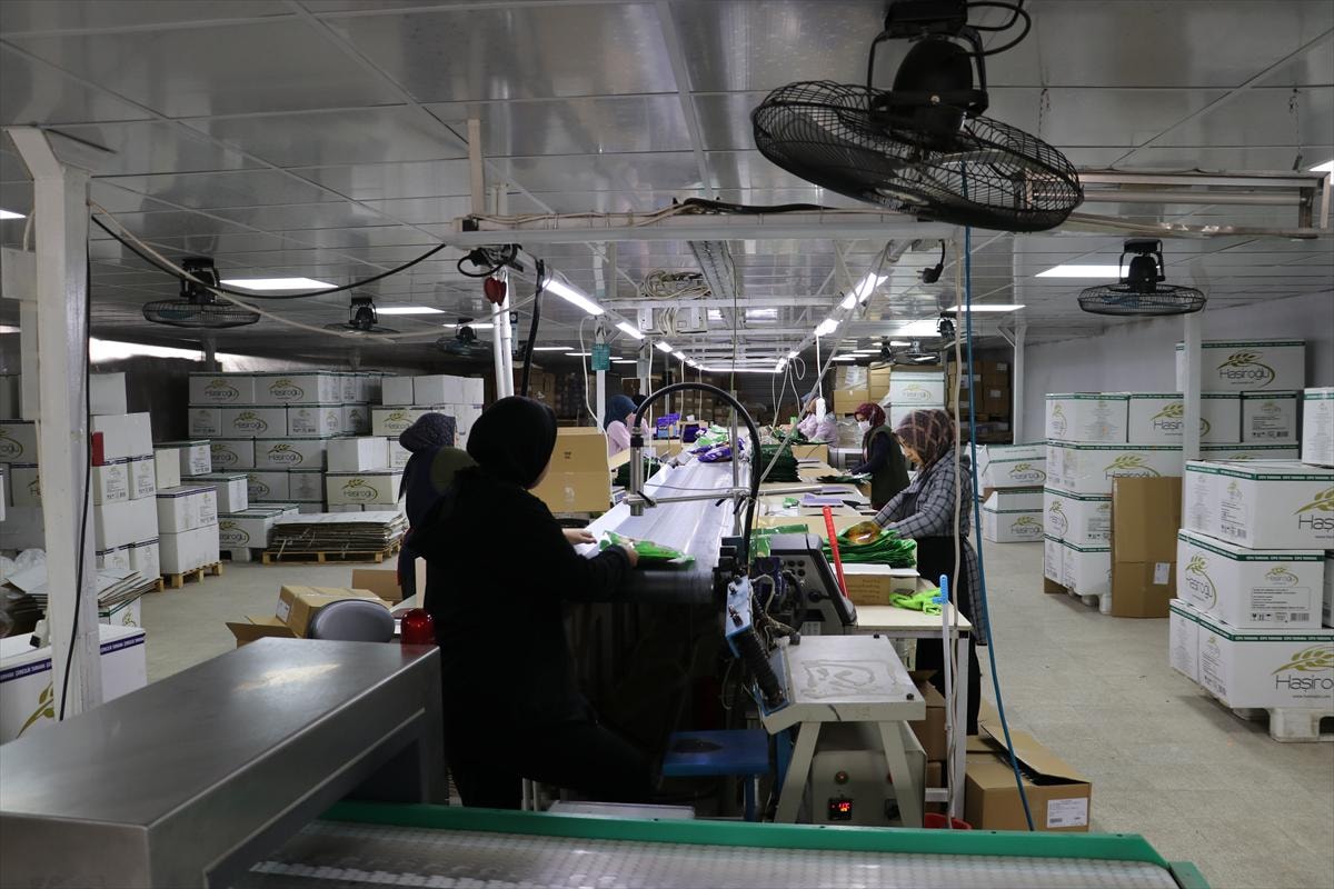 Üretim tesisinin bir bölümü yıkılan firmalar stoktaki ürünleri pazara sunmak üzere kısıtlı çalışanla paketleme işine devam ediyor.