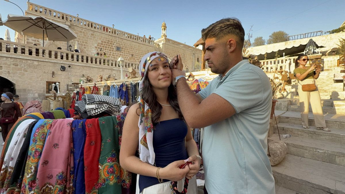Yöresel şal bağlama işi yapan esnaf Aysel Akgün de "Midyat çok sıcak ama hem Türkiye içinden hem de yurt dışından arkadaşlarımız geliyor. Biz bu durumdan çok memnunuz. Hepinizi bekliyoruz. Berrin arkadaşımız da yurt dışından geldi, şal bağladık ona, kına yaptık. Hepinizi Midyat’a bekliyoruz" diye konuştu.
