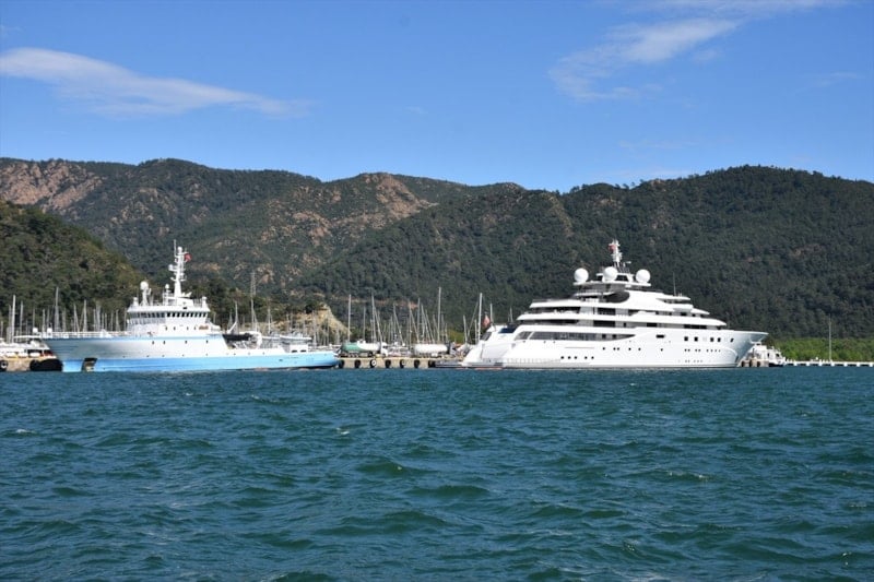 Cayman Adaları bayraklı 149 metre uzunluğundaki lüks yat "A+" Muğla'nın Marmaris ilçesine geldi.