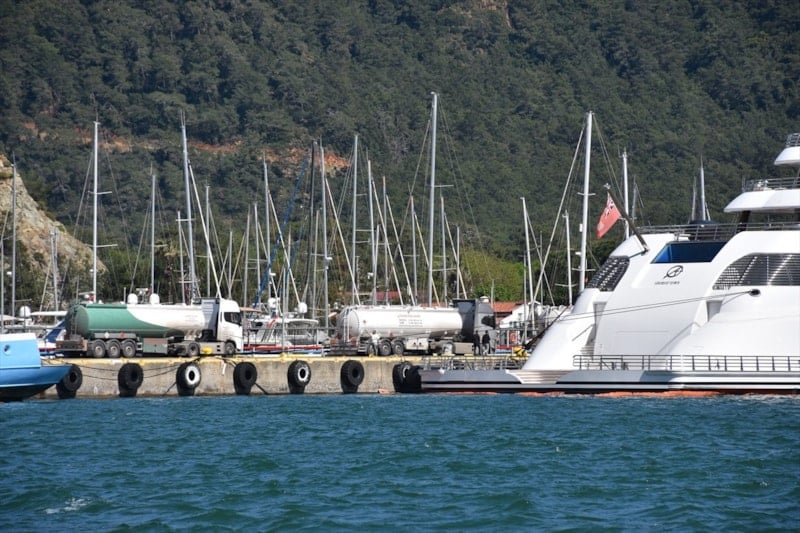 Marmaris Limanı'nda göz kamaştıran bir görüntü oluşturan dünyanın en büyük 10 yatından biri olan 'A+' lüks yat, 400 bin litre akaryakıt ikmali için Aliağa Rafinerisi'nden tankerle yakıt aldı. Yatın muhteşem yolculuğu, meraklı bakışları üzerine çekti.