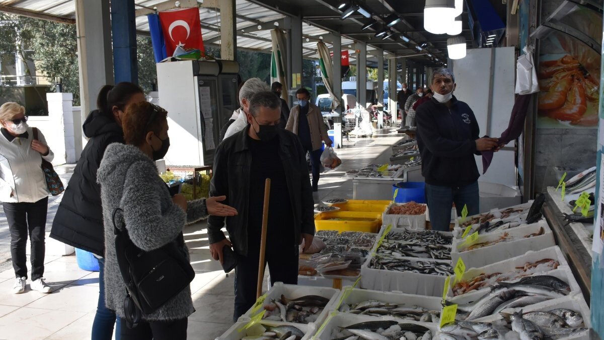 Marmarisliler, yılbaşı öncesi deniz ürünlerine yöneldi. Sosyal mesafe kuralına uyup, maskelerini takan vatandaşlar, genelde kilosu 35 liradan satışa çıkarılan hamsiyi tercih etti. Denizin sakatatları olarak adlandırılan kalamar, karides ve çim çim gibi deniz ürünleri de tercihler arasında yer aldı. Halde, mercanın kilosu 75, lapanın 30, levreğin 65, sardalyenin 50, barbunun kilosu ise 55 liradan satıldı.