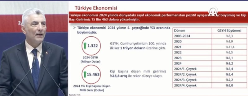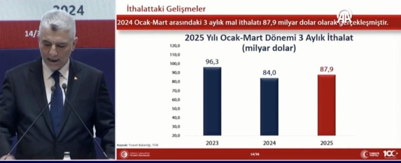 Ticaret Bakanı Ömer Bolat, mart ayı dış ticaret verilerini açıklarken aynı zamanda Türkiye'nin gelen ekonomik görünümüne ait saptamalarda bulunarak Türkiye ekonomisinin 2024 yılının 4. çeyreğinde yüzde 3 büyüdüğünü hatırlattı.