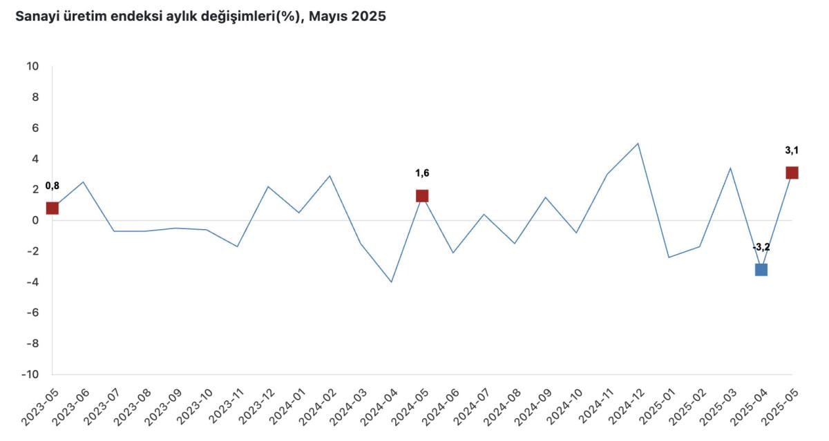 SANAYİ ÜRETİMİ AYLIK YÜZDE 3,1 ARTTI