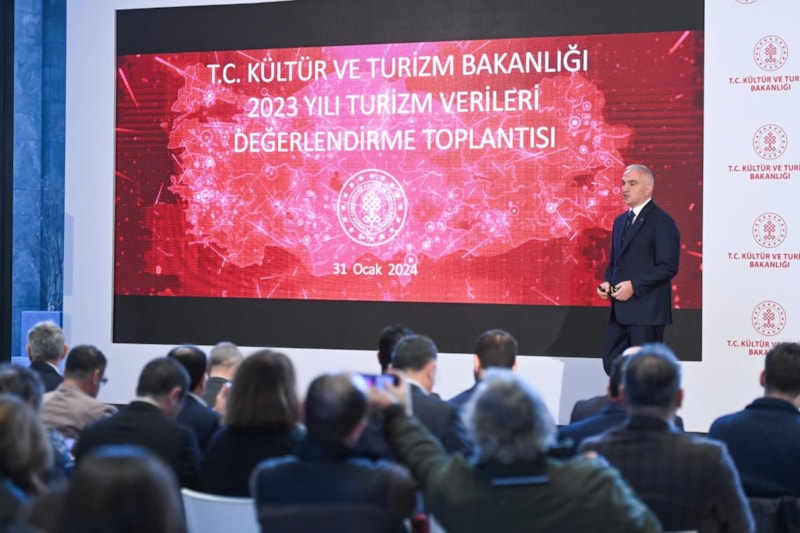 Kültür ve Turizm Bakanı Ersoy, 2023 Yılı Turizm Verileri Değerlendirme Toplantısı'nda Türkiye'yi ziyaret eden turist sayısını ve turizm hareketlerini aktararak 2024 yılı hedeflerini açıkladı.