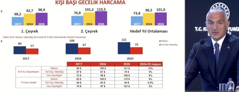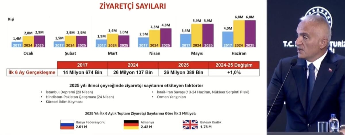 Kültür ve Turizm Bakanı Mehmet Nuri Ersoy, 2025 ikinci çeyrek ve 6 aylık turizm verilerini aktardı.