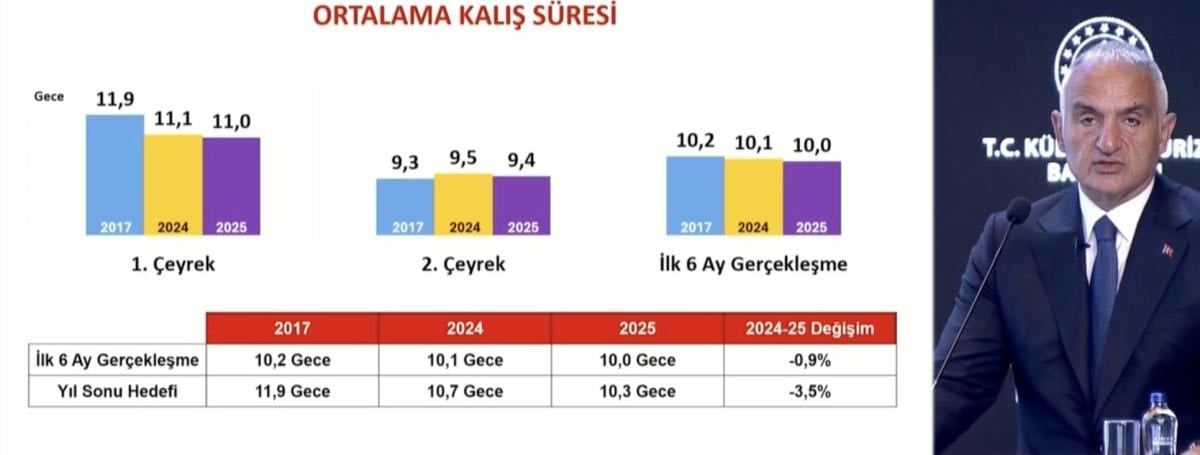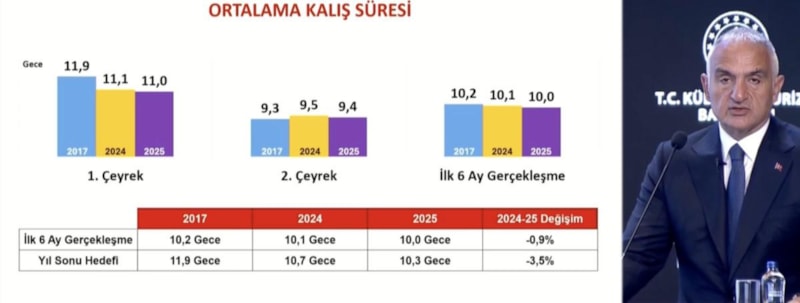 Ortalama kalış süresi 2025'te 10 gece oldu. Bu alandaki yıl sonu hedef ise 10,3 gece olarak açıklanmıştı.