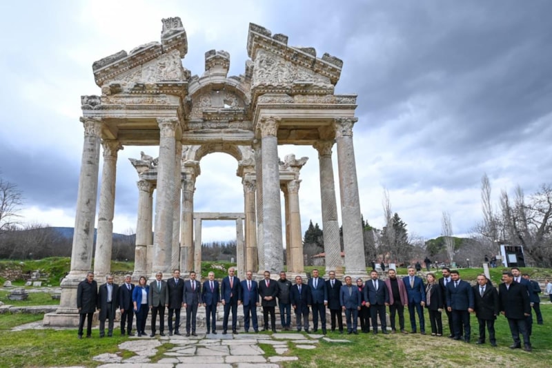 Anıtsal mimarisi ve heykel sanatının eşsiz örnekleriyle donanmış göz alıcı antik kentlerimizden biri olan Aphrodisias’ta hayata geçireceğimiz "Geleceğe Miras Aphrodisias" projesinin tanıtımını gerçekleştirdik. UNESCO Dünya Mirası Listesi’nde yer alan Aydın ilimizin bu özel arkeolojik alanında 12 aya yayılacak kazı, restorasyon ve konservasyon sürecini başlatıyoruz. Diğer taraftan bütüncül bir çevre düzenleme ve aydınlatma çalışmalarıyla antik kentimizi gece ve gündüz ziyaretçilerimize açacağız.