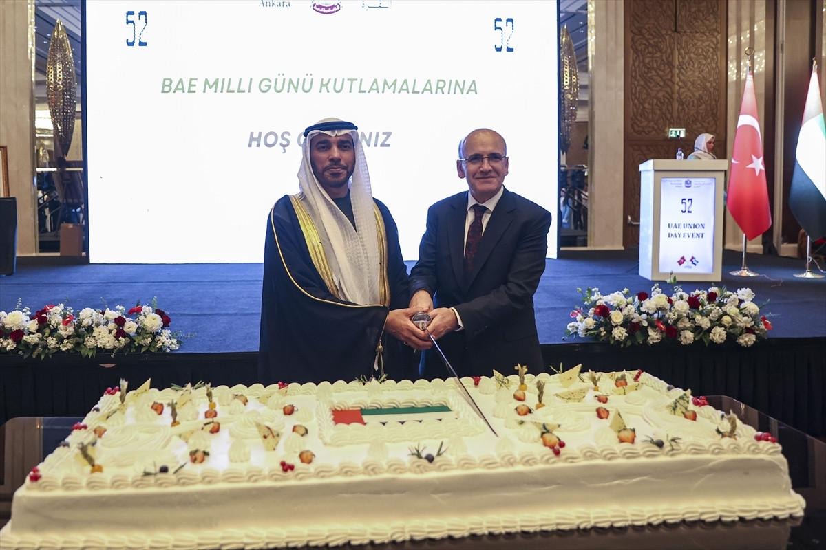 BAE'nin Ankara'daki büyükelçiliğince düzenlenen BAE'nin 52'nci Milli Günü resepsiyonunda açıklamalarda bulunan Hazine ve Maliye Bakanı Mehmet Şimşek, BAE'nin 52. Milli Günü'nü kutladığını dile getirerek, "BAE, bizim için ekonomik, diplomatik ve bölgesel güvenlik açısından stratejik bir ortak. Ülkelerimiz arasındaki ilişkiler her geçen gün daha da güçleniyor." şeklinde konuştu.