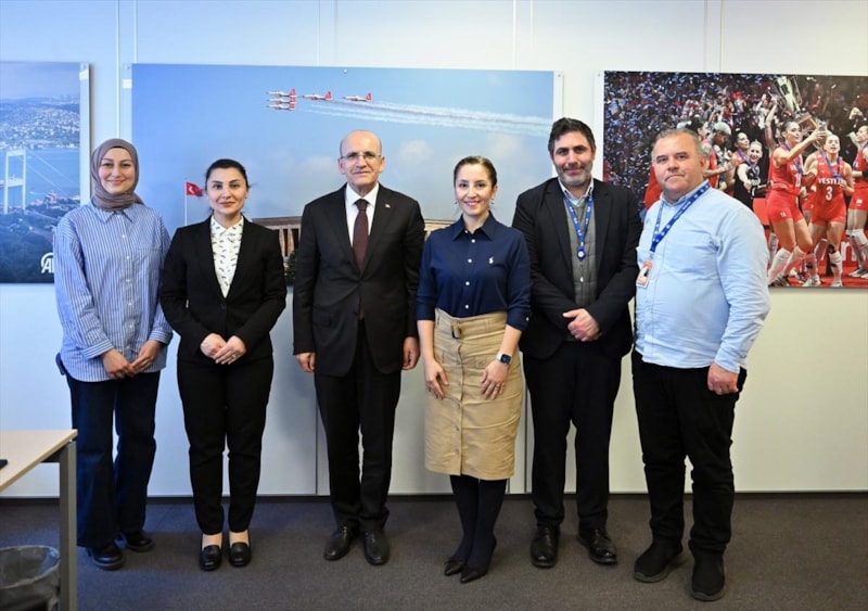 Bakan Şimşek, Türkiye'nin AB nezdindeki Daimi Temsilcisi Büyükelçi Faruk Kaymakcı ile düzenlediği ziyarette, AA Avrupa Haberleri Müdürü Nazlı Yüzbaşıoğlu'ndan kurumun Avrupa ve dünya genelindeki çalışmaları hakkında bilgi aldı.
