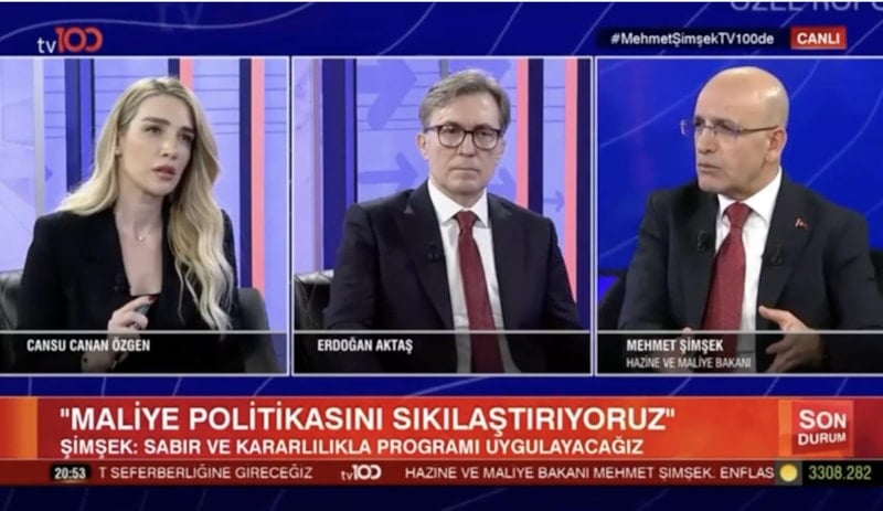 tv100 programına katılan Hazine ve Maliye bakanı Mehmet Şimşek, Erdoğan Aktaş ve Cansu Canan Özgen’in sunduğu Özel Röportaj programına konuk oldu.