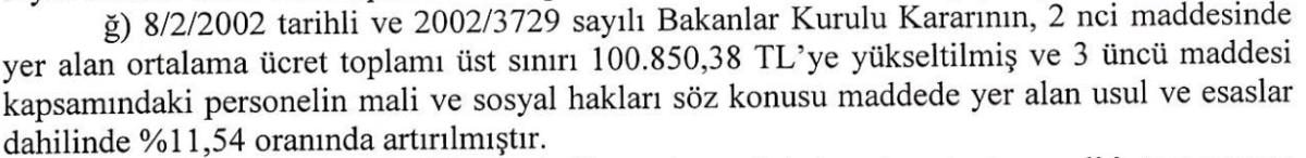Ortalama ücret toplamı üst sınırı da 100 bin 850,38 TL'ye yükseltidi ve personelin mali ve sosyal hakları söz konusu maddede yer alan usul ve esaslar dahilinde yüzde 11,54 oranında artırıldı.