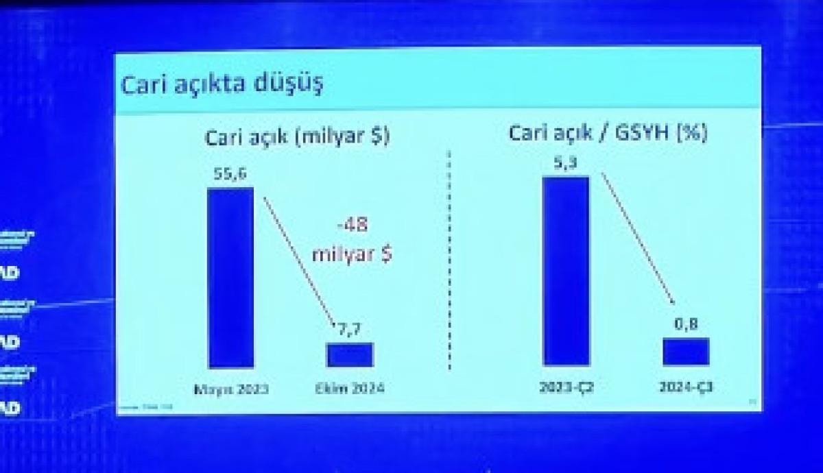 -Kamuda personel genişlemesini durdurduk. Kamuda kiralık taşıt sayısını yüzde 16 düşürdük. Türkiye'nin brüt dış finansman ihtiyacı azalıyor. 2025'te hedefimiz dezenflasyonun daha hissedilir olması ve yapısal dönüşümün hızlanması.