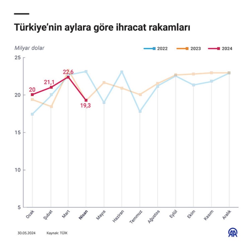 Türkiye İstatistik Kurumu (TÜİK), bugün nisan ayına ait dış ticaret istatistiklerini yayınladı.