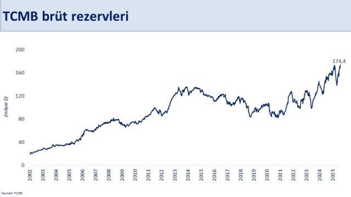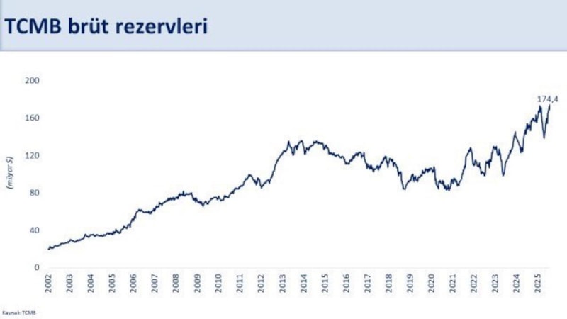 Brüt rezervler 174,4 milyar dolar ile tarihi zirvede.