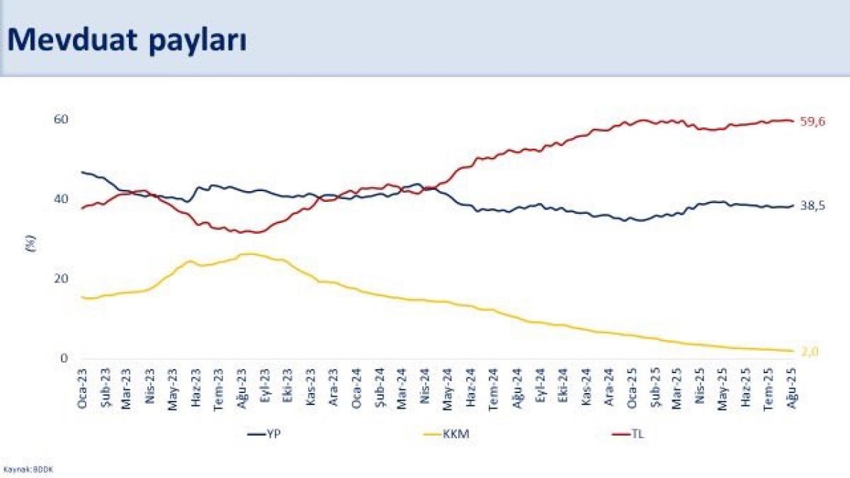 TL mevduatın payı yüzde 59,6’ya yükseldi.