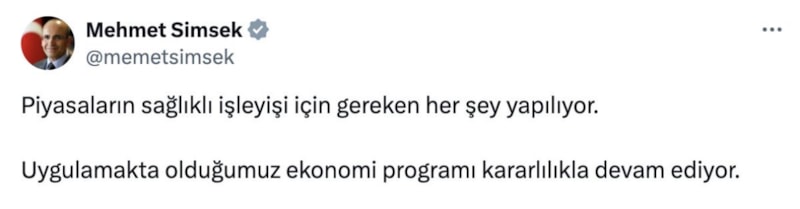 Bakan Mehmet Şimşek, İBB operasyonları sonrasında piyasadaki hareketlenmeye vurgu yapan bir mesaj paylaşarak şu açıklamayı yaptı:
