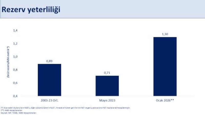 Hazine ve Maliye Bakanı Mehmet Şimşek, sosyal medya hesabından paylaştığı mesajla Türkiye Cumhuriyet Merkez Bankası (TCMB) rezervleriyle ilgili şu değerlendirmede bulundu: