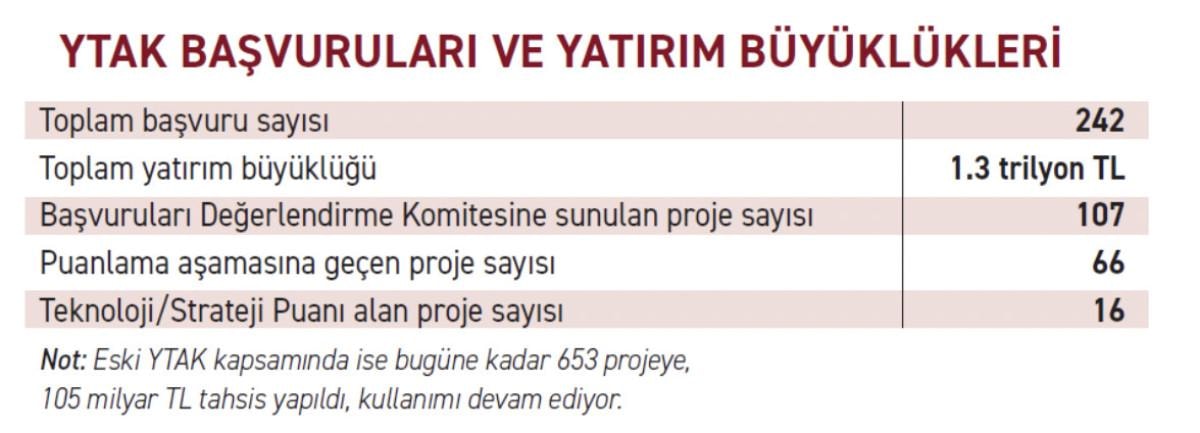 Bildiğiniz gibi YTAK, 2023 yılı sonunda yenilendi, 2024-2026 yıllık 100 milyar TL olmak üzere, toplam 300 milyar TL limit belirlendi. Başvuruları Sanayi ve Teknoloji Bakanlığı değerlendiriyor, daha önce kamuoyuna duyurulduğu gibi projelere Teknoloji/Strateji Puanı veriliyor. Başvurular 2023 Aralık ayında alınmaya başladı. Teknik yeterlilik, finansal fizibilite zaman alan süreçler. O nedenle önümüzdeki aylarda bu programın hızlanmasını bekliyoruz.